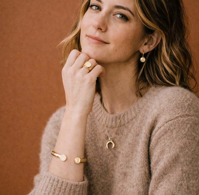 We believe jewellery should feel effortless and intentional. Every Aurelia piece is created with careful attention to structure, comfort, and subtle detail. Our collections move seamlessly from everyday wear to special moments.